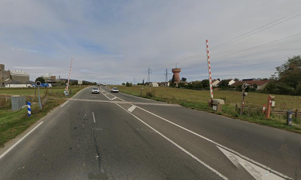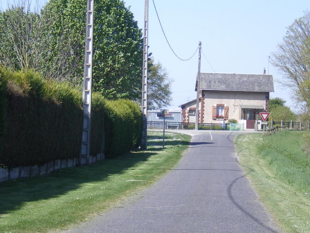 A Janville-en-Beauce, le P.N. 24 sur la D 109 (rue du mail du Jeu de Paume). Admirez les belles barrières d'époque, encore utilisées (2015) lors du trop rare passage d'un train de céréales: :
